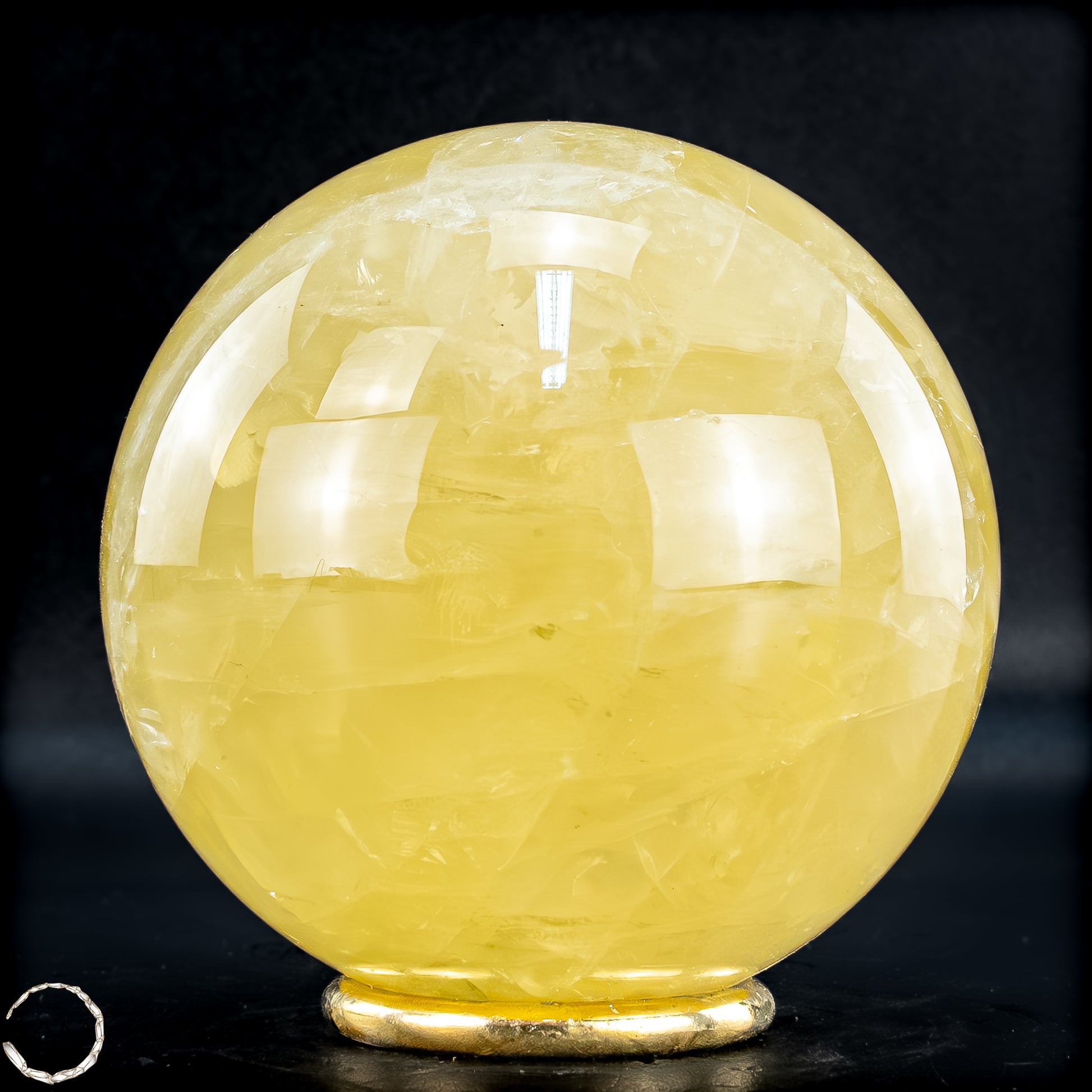 Citrin ist ein kraftvoller Edelstein, der mit seiner leuchtend gelben bis goldenen Farbe sofort Wärme, Licht und Lebensfreude ausstrahlt. Die Kugel auf dem Bild ist ein hervorragendes Beispiel für hochwertigen, klaren Citrin: strahlend, transparent und durchzogen von zarten inneren Strukturen, die das Licht in faszinierender Weise brechen. Besonders wenn er – wie hier – von unten beleuchtet wird, entfaltet Citrin seine volle, sonnenhafte Leuchtkraft.